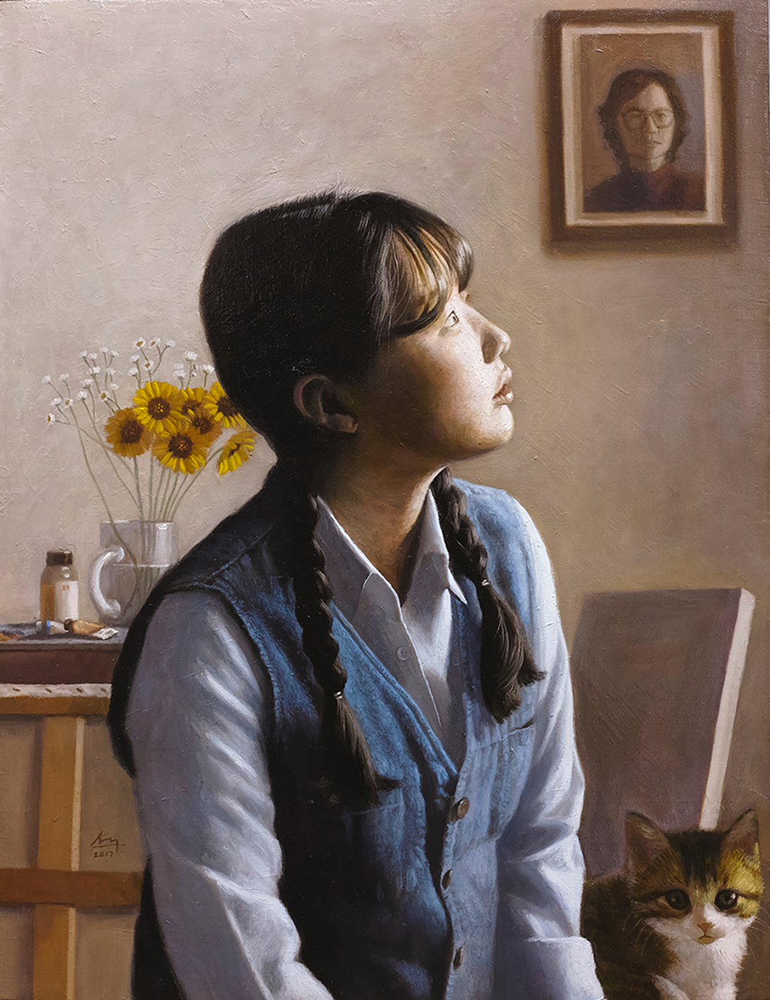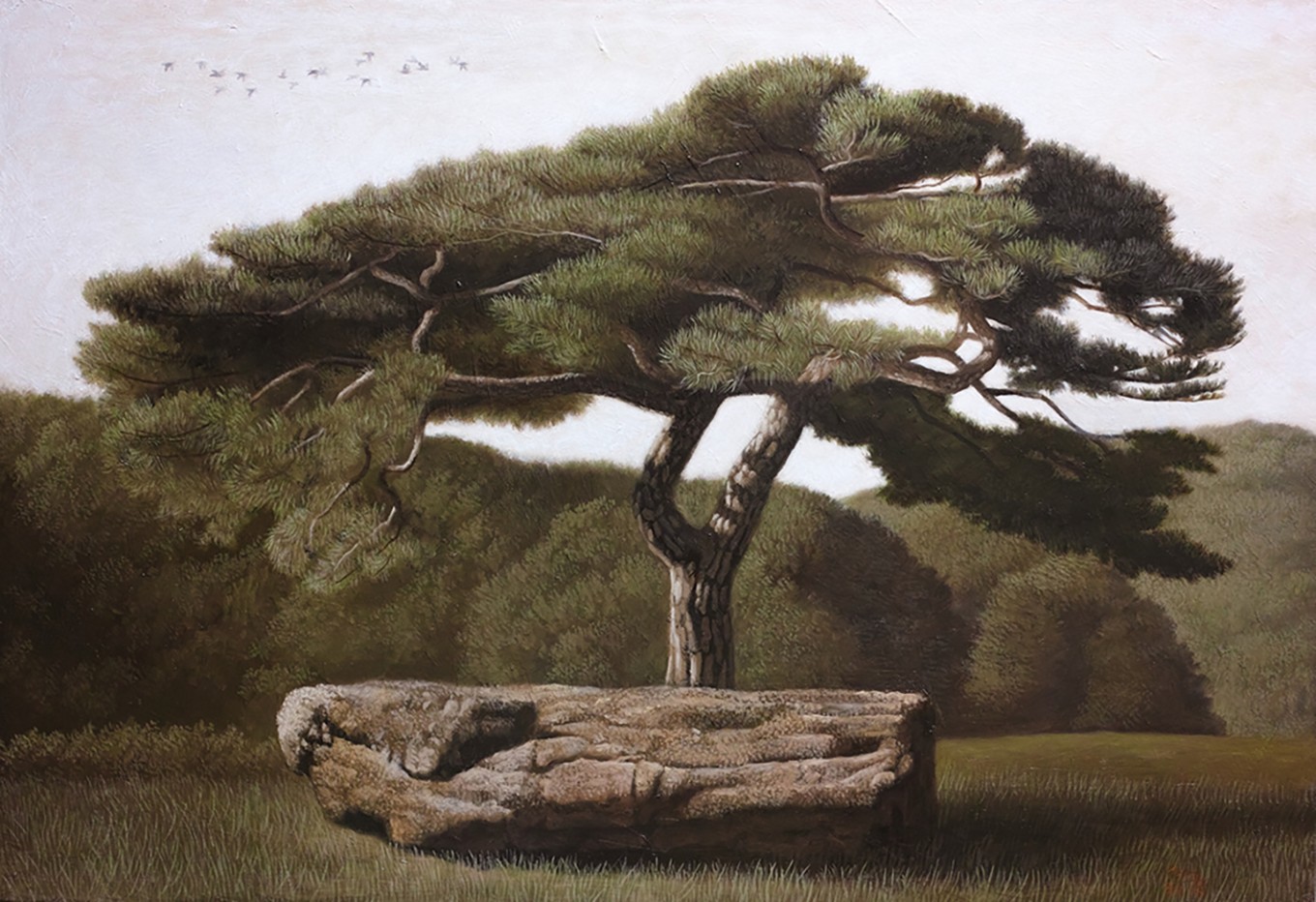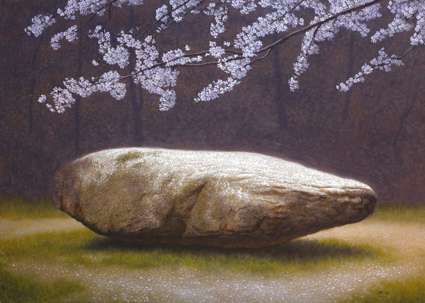 물론 그 대상은 바위가 아니어도 상관없다. 중요한 것은 점이라는 조형요소를 가지고 고전적인 유화기법을 구사하여, 그는 형태와 색의 재현을 넘어 대상의 본질을 추구하고 있다는 것이다. 그래서 그의 작품은 인물이건 아니건 명제가 초상(肖像)이다. 초상의 초(肖)는 작을 소(小)에 육달 월(月=肉)자가 결합하여 ‘닮다’, ‘모양이 같다’라는 뜻이다. 그러므로 작은 점이 전체를 이루는 그의 작품은 반드시 초상이어야 하는 것이다.