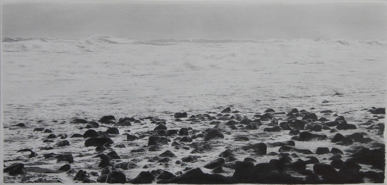 그림 주제인 바다가 주는 느낌은 컬러의 화려함이 없더라도 흑백이 가지고 있는 고유의 감정유발로 충분히 그 느낌을 각자의 감성을 끌어 내리라 생각이 된다.