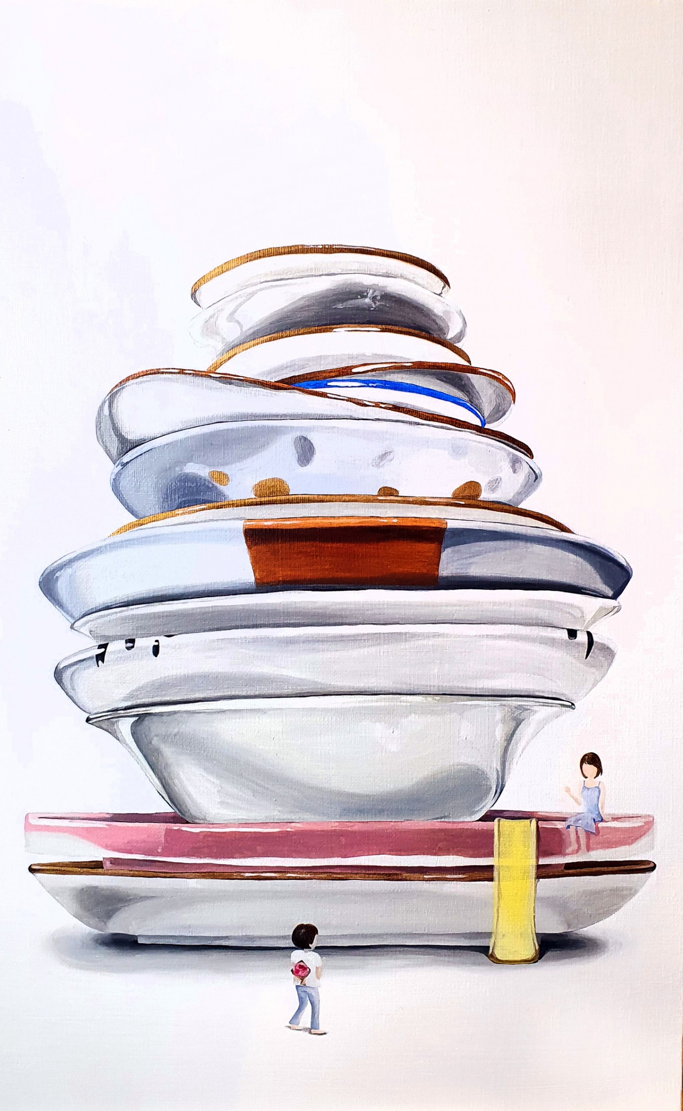 바람이 분다/ 쌓인 접시 위에 부부가 있다. 같은 방향을 바라보며 선선한 바람을 쐬는 그들의 행복.