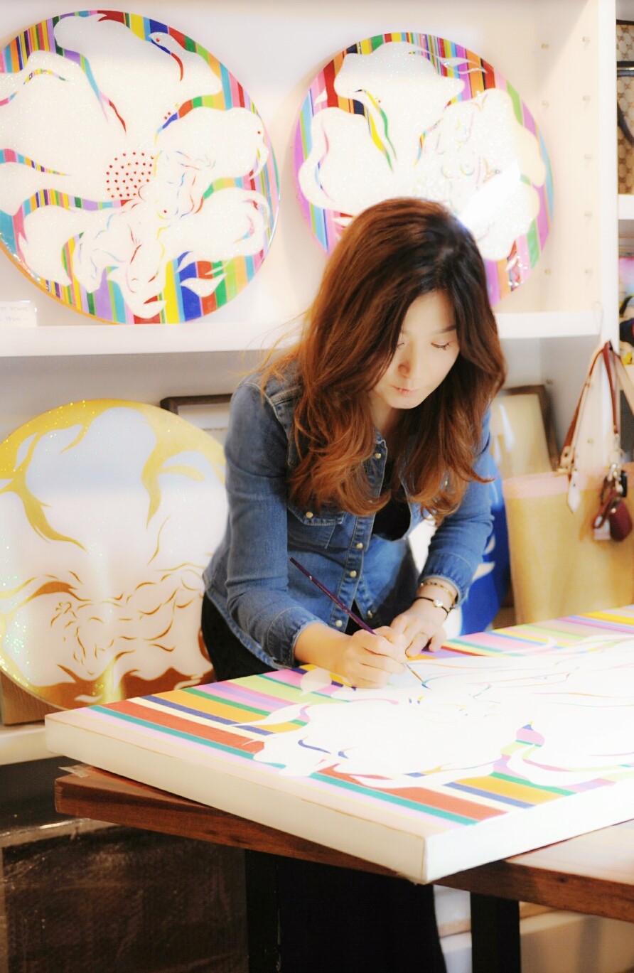 꽃을 여백으로 비워주고 꽃잎의 색을 뺀 후 생명과 짝을 이루는 개념으로 투명물감으로 여백위에 무한한 우주를 점으로 찍어 채우고 여백에 오방색 또는 여러 가지 색과 모노톤의 다양한 색을 표현하며 색의 치유력을 높이려 한다. 이른바 빠르게 살아가는 현대인들의 만병의 근원인 스트레스를 색으로 치유하고자 한다. 아트 테라피(art therapy)다.