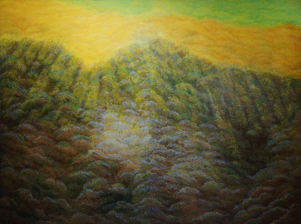 반복적으로 선을 그리는 행위는 세상을 불완전하게 볼 수 없는 나를 보여준다. 이렇게 몰두하는 동안에 나는 알 수 없는 무아에 빠진다. 선은 그어지고 채워지면서 규정 할 수 없는 새로운 세계가 캔버스에 나타난다. 이 세계는 남들과 다르게 세상을 볼 수 밖 에 없는 나를 드러낸다. 지극이 단순하면서도 반복적인 움직임을 통해 화면에 나타나는 형상들은 나를 찾아가는 구도의 길처럼 보인다. 선 긋기, 혹은 선 그리기를 통해 반복되는 노동의 조형적 변주를 탐구한다. 필연과 우연의 경계 사이를 구획 짓는 선택의 순간들이 무수히 집적되면서 만들어낸 ‘선의 패턴’은 선인장, 바다 속 산호, 구름, 물결, 숲, 산맥 등 불가사의한 자연의 이미지들 혹은 미확정의 심적 이미지인 이미저리(imagery)로 변주한다.