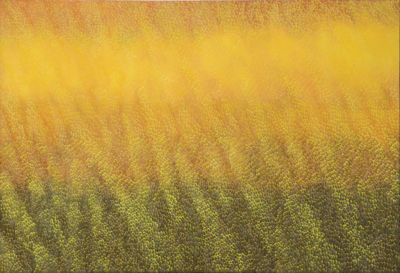나에게 노동집약적 반복 행위는 하나의 즐기는 행위이다. 농사를 짓는다고 생각해보면 쉽게 이해 할 수 있다. 똑같은 일을 반복적으로 하고 붓질의 반복성은 시간의 흐름에 따라 그 속에서 즐거움을 찾고 다듬어 나가고 변화를 찾아나가 최종적으로 결과물을 수확하는 과정이라 볼 수 있다. 짧고 가는 선으로 촘촘히 캔버스를 채우며 연속적인 색면을 그린다. 수없이 반복되는이 행위는 작가의 시각적 손상에 의한 착시에서 비롯된 것으로, 회화에서 특유의질감을 표현하는 기반이 된다. 이렇게 강박적으로 수행하는 붓질을 통해서 자신의 시각을 인정하고 포용하며, 완성된 회화로 그 감각을 구체화한다.