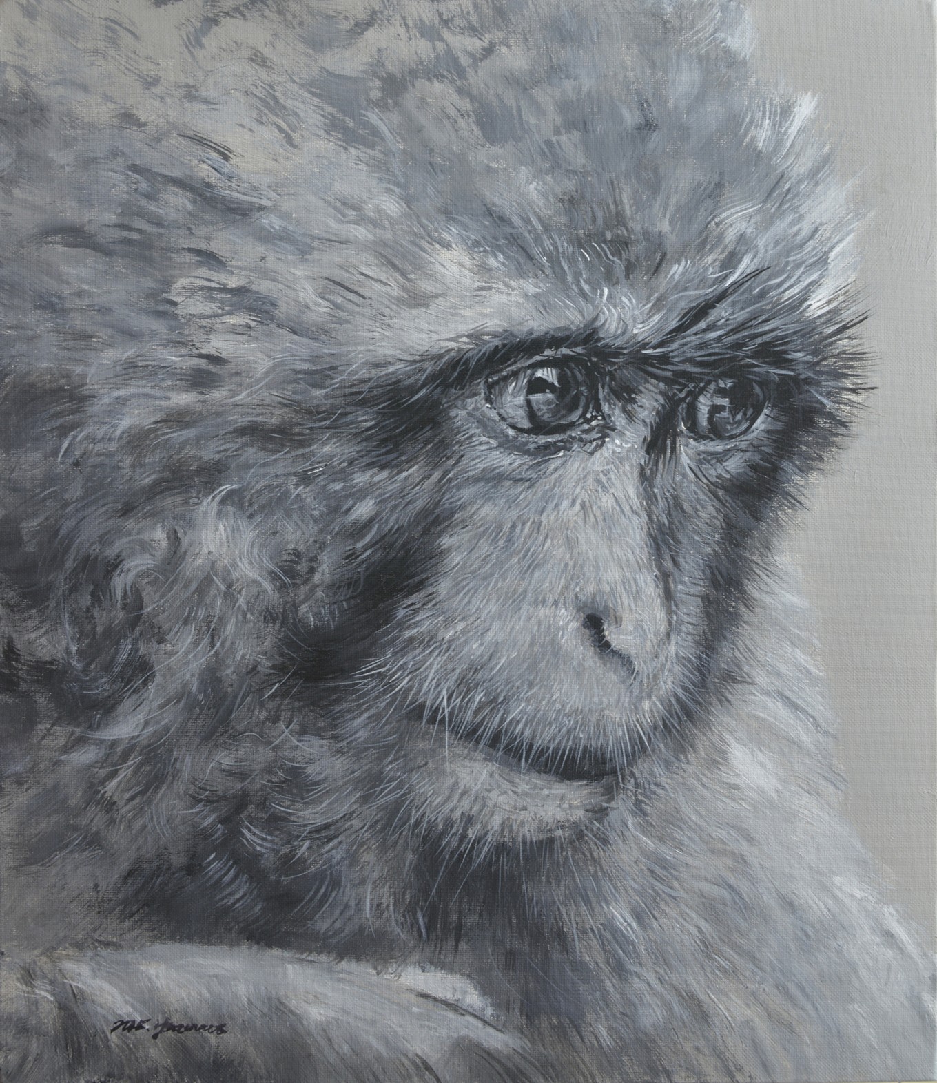 무언가를 뚫어지게 바라보는 맑은 눈, 먹을 것을 남에게 빼앗기지 않으려는 생존의 치열함이 서려있는 눈, 금방이라도 눈물이 떨어질 것 같은 슬픈 눈 등이 그의 작품에서 원숭이의 시선을 통해 드러나 있습니다.