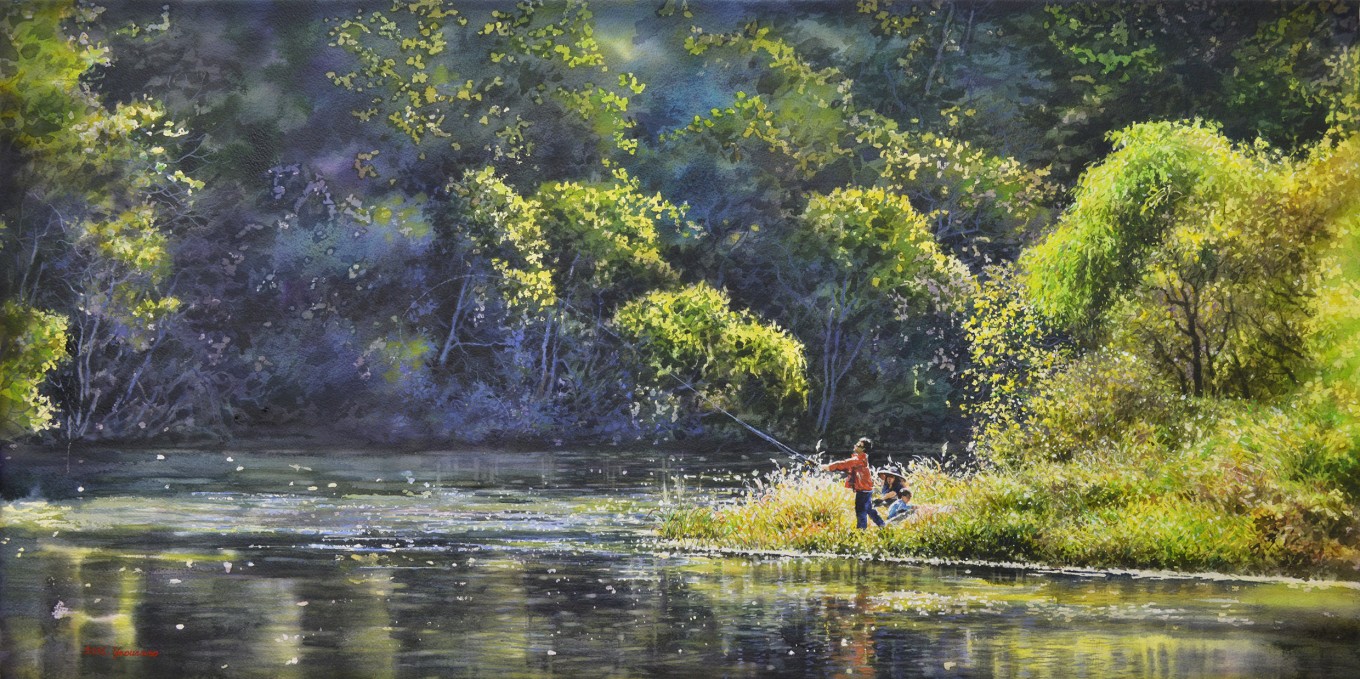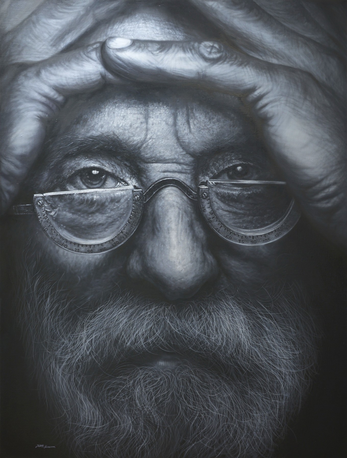 그의 시선이기도 한 '시선' 연작에는 그가 최근 느끼는 행복이 스며있기도 합니다. 책과 그림을 좋아했던 그는 30여년간 늘 좋아하던 일을 해올 수 있었습니다. 남들의 시선에 아랑곳하지 않고 자신만의 세계에 빠져 즐거운 삶을 살아온데는 아내(화가 김숙정)의 내조가 큰 역할을 했습니다. 몇년전 갑작스럽게 병원신세를 진 뒤 아내의 소중함을 알게 됐다는 그는 이 과정에서 일상을 새롭게 바라보기 시작했고 그것이 행복지수를 크게 올렸다고 했습니다. 이것이 세상을 새롭게 바라보는 그의 시선을 담는 것에까지 다다르게 되었습니다. 순수함을 담은 그의 그림 속 시선은 결국 행복을 찾은 그의 눈 입니다.