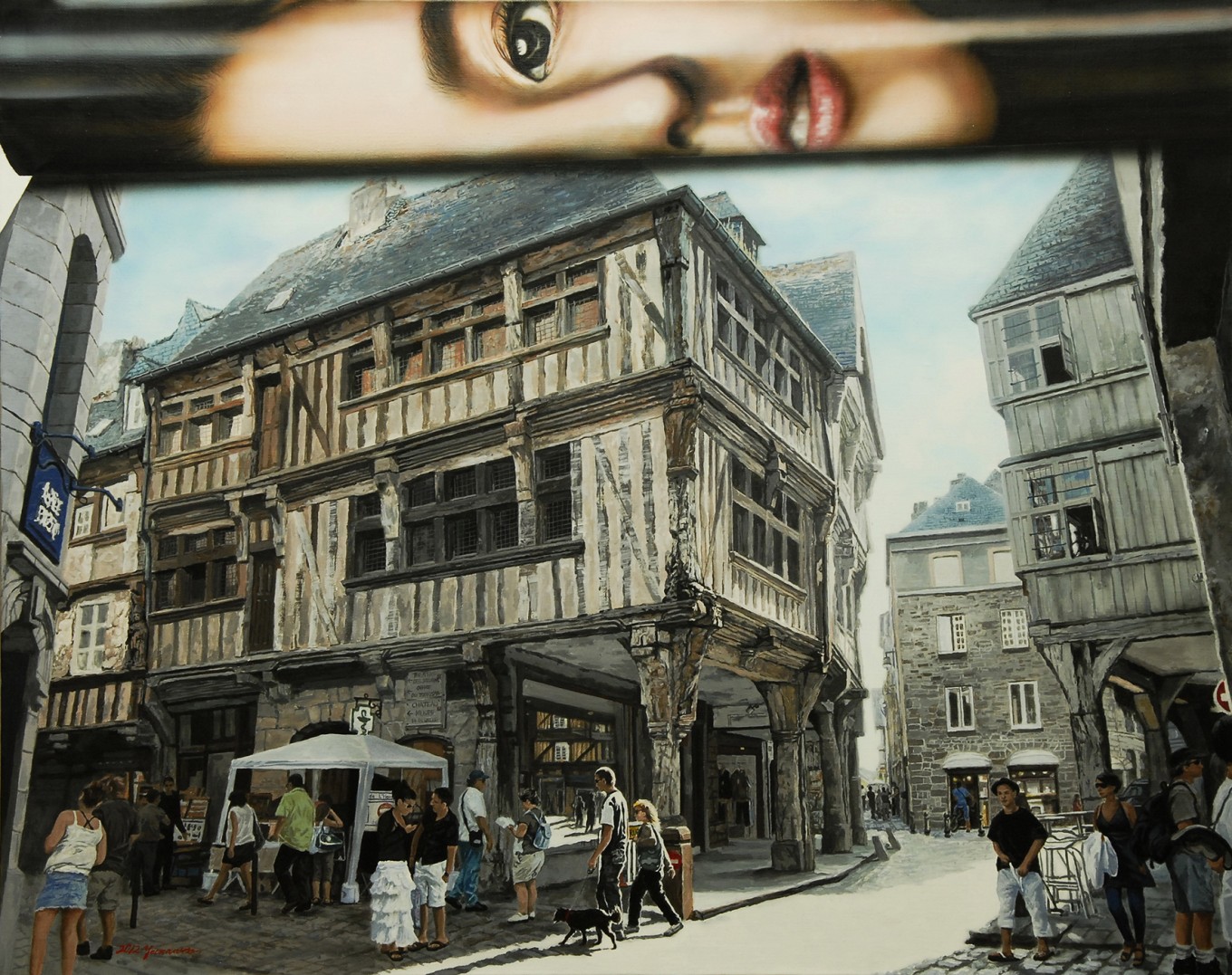 대학때부터 자연풍경 등에 매료돼 풍경화를 즐겨 그렸던 그는 7~8년 전부터는 자연풍경에 잡지, 인물 등을 매력적으로 접목시킨 '매거진'연작과 '여행' 연작을 선보였습니다. 이들 작품은 무언가 뚫어지게 보기를 좋아하는 그의 습관에서 비롯된 것인데 그것이 드디어 '시선' 연작으로 이어졌습니다.