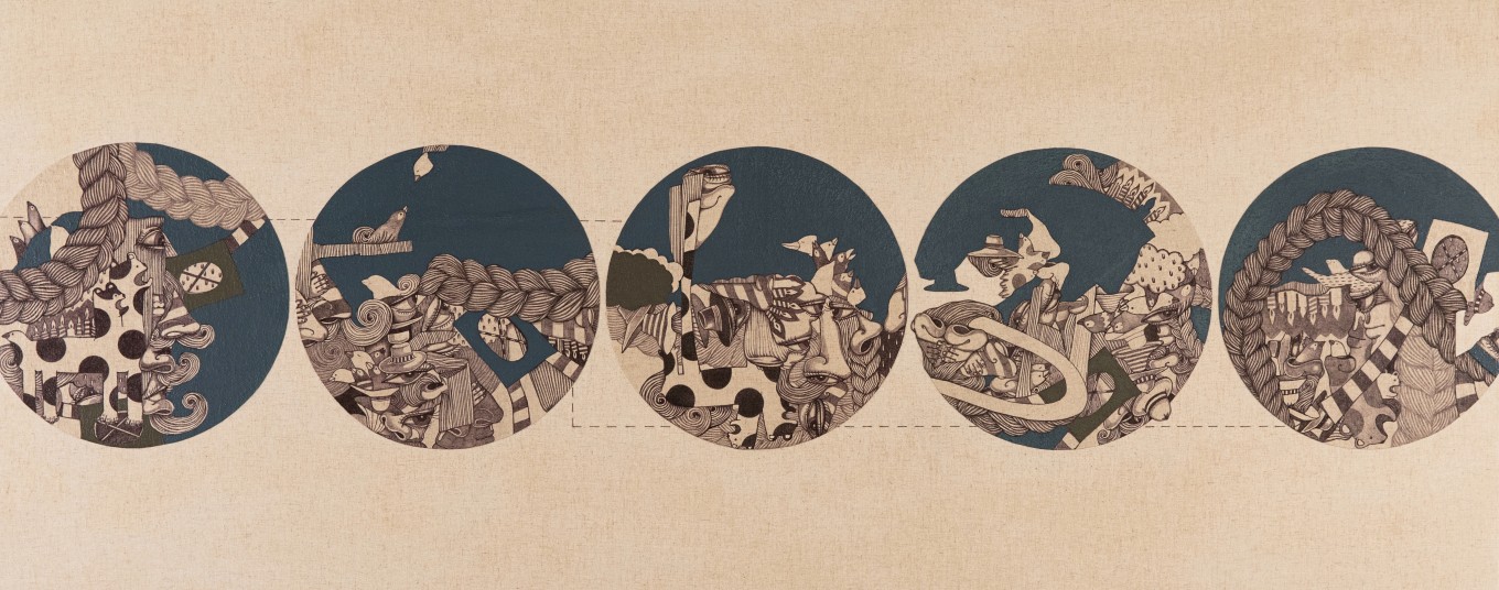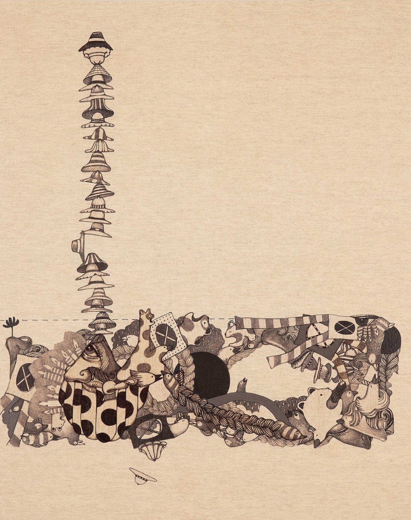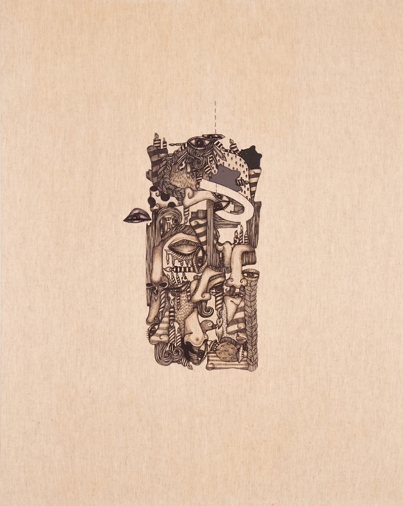 ◾일상 속에서 조우하는 자연의 모습들-동‧식물, 산, 구름, 비, 나무, 꽃 등-과 그에 부합된 신체적인 다양한 이미지들-눈, 코, 머리카락, 눈물, 손 등)-을 자동기술법(Automatism)과 유사한 즉흥적인 표현방식으로 리넨 위에 볼펜을 이용하여 자유롭게 그려낸다. 화면에 배치되는 형태는 사적인 감각에 의해 반복, 연쇄되거나 우연히 관계하면서 비서사적인 흐름을 띄며, 마치 초현실주의적 혹은 누보로망(nouveau roman)의 소설에서 보여 지는 비현실적 모습으로 몽중의 풍경을 만들어 낸다. 생생하게 각인된 꿈속의 풍경 같은 화면은, 자신이 현재 겪고 있는 신체적‧환경적 변화의 다중적인 심리와 정서의 표현이다.