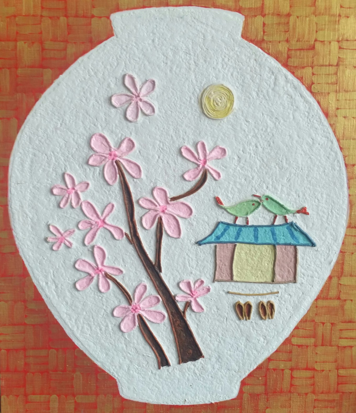 우리 고유의 달항아리를 작품의 소재로 하고 있으면서도 우리나라 자연의 모습을 기억 속 에서 현실적 공간으로 형상화 시키는 독특한 꿈의 세계를 표현한 것이다.