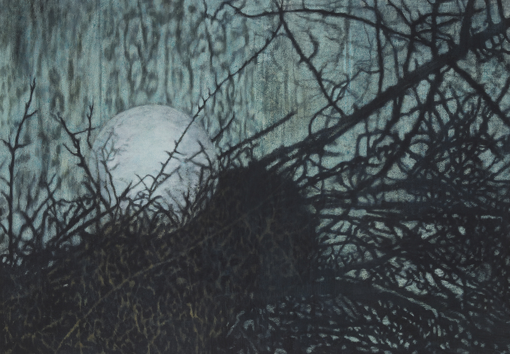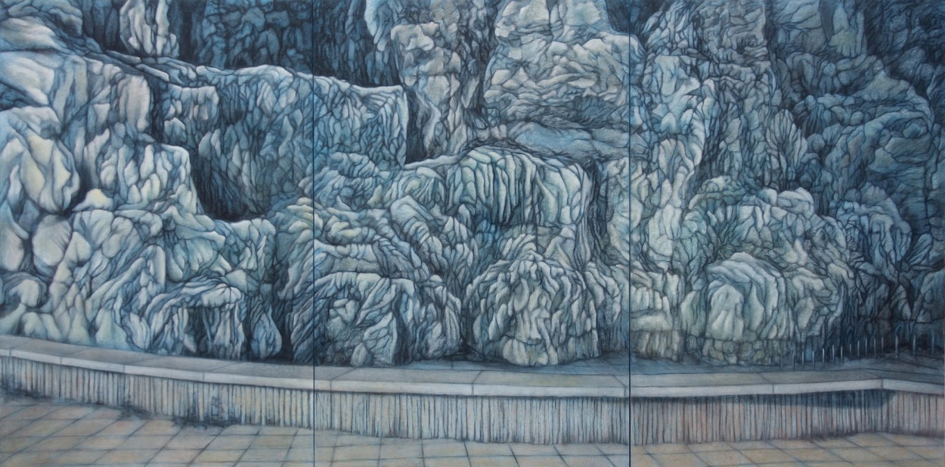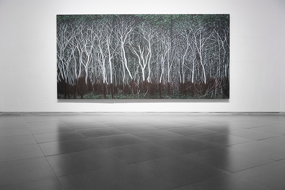 목탄을 사용한다. 이내 사라지는 풍경을 먼지와 같은 목탄을 이용해 그려나가는 것은 지우고 문지를 수 있는 행위 들을 통해서 풍경에 일종의 막을 씌울 수 있는, 촉각 적인 화면을 나타낼 수 있을 뿐만 아니라 그것을 붙들려고 하는 정서적인 부분과 맞닿아 있다고 할 수 있다.